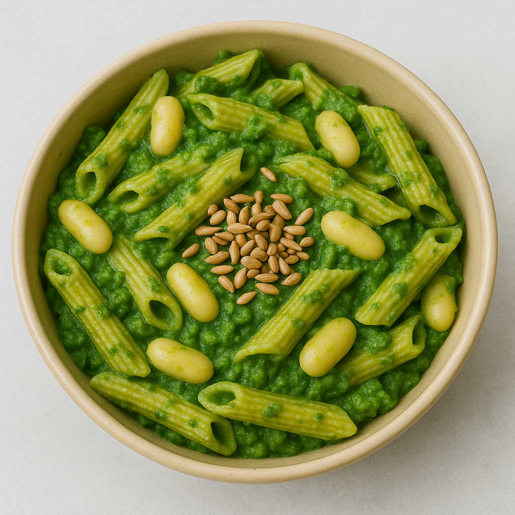 A comforting and nutritious pasta dish that blends kale, garlic, and cannellini beans into a silky, fibre-rich sauce.